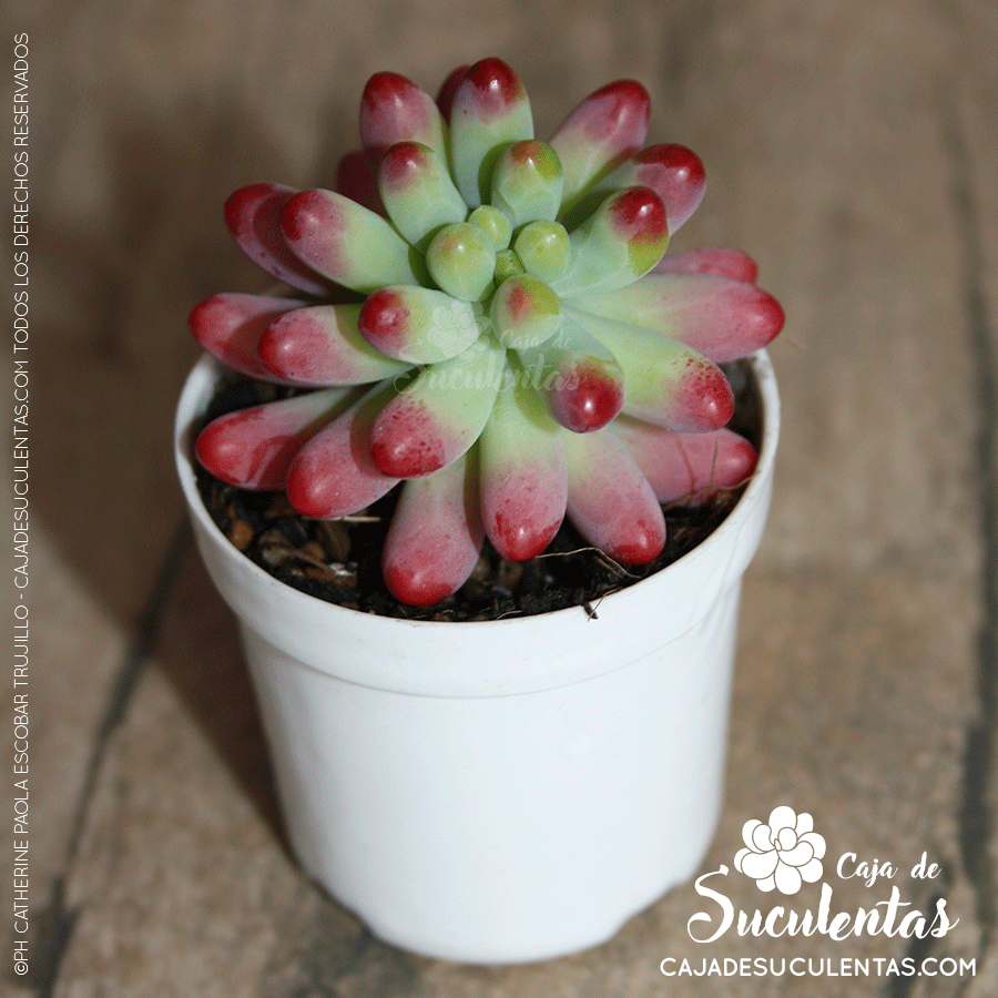 Es una planta suculenta que se conoce también como «dedos», «dedos de Dios», «naríz de borracho, de origen Mexicano (desde donde se conoce). Sus hojas son gorditas de color verde en diferentes tonalidades (si está al interior) y con puntas redondeadas rojizas si recibe una buena cantidad de horas de sol.